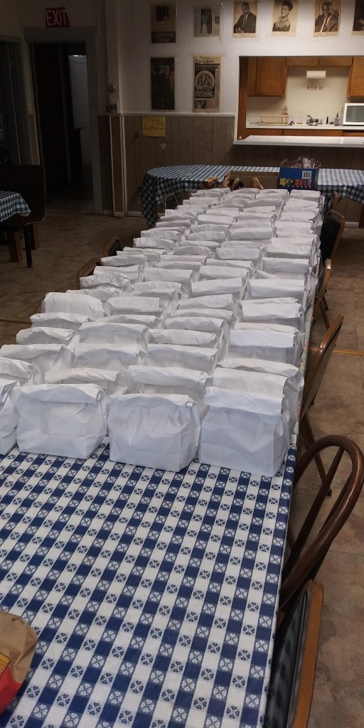 100 bags for our community assistance program.Praise the Lord!!